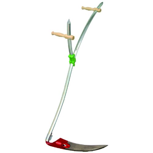 Ideal zum kontrollierten Mähen von Unkraut und Wildwuchs entlang von Hecken oder auf Obstbaum-Wiesen. Das Blatt ist kürzer und kräftiger als das Grasblatt und nimmt auch eine Kollision mit einem Fremdkörper nicht gleich krumm. Der Wurfarm lässt sich nach Körpergröße (170 - 185 cm) und -haltung einstellen. Mähfertig gedengelt und geschärft, mit Gebrauchsanweisung.